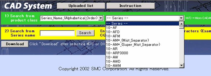 electronic catalog are displayed in alphabetical order by selecting the <Series Name (Alphabetical Order)> from the product class,