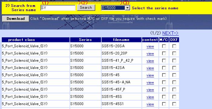 are displayed on the screen by entering the series name (e.g. SY5000).