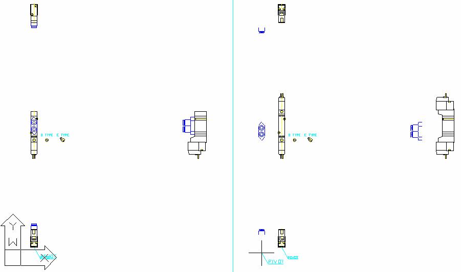 The left drawing below shows the stage after the port block has been pasted (colored in blue here for clarification) to the single solenoid and the right drawing shows the stage just before the port block will be pasted to the double solenoid.