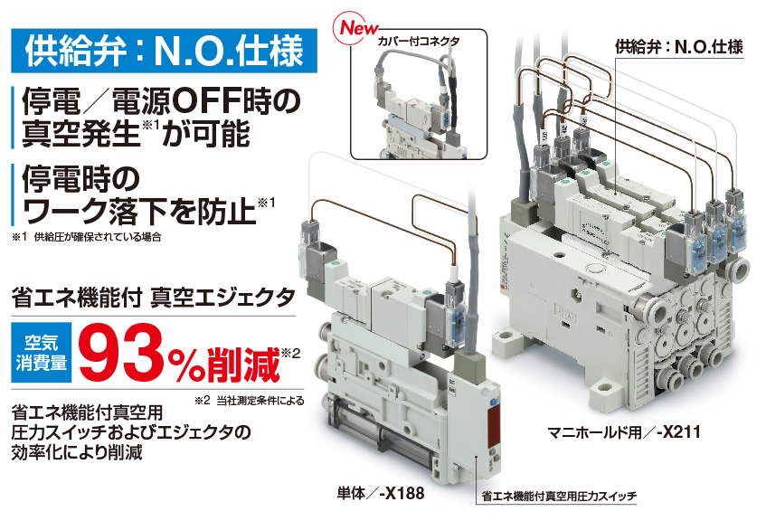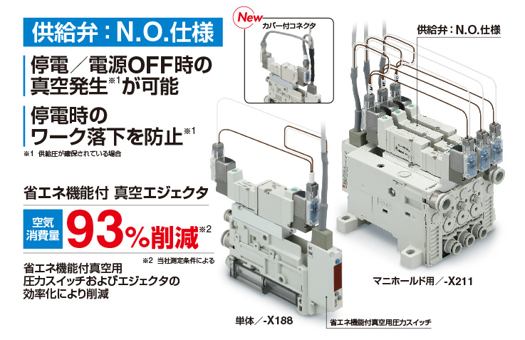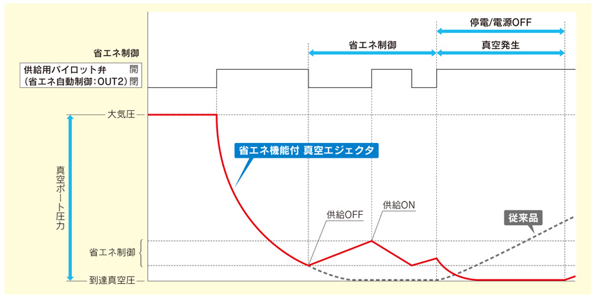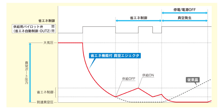 ■省エネ機能付 真空エジェクタ:空気消費量93% 削減
