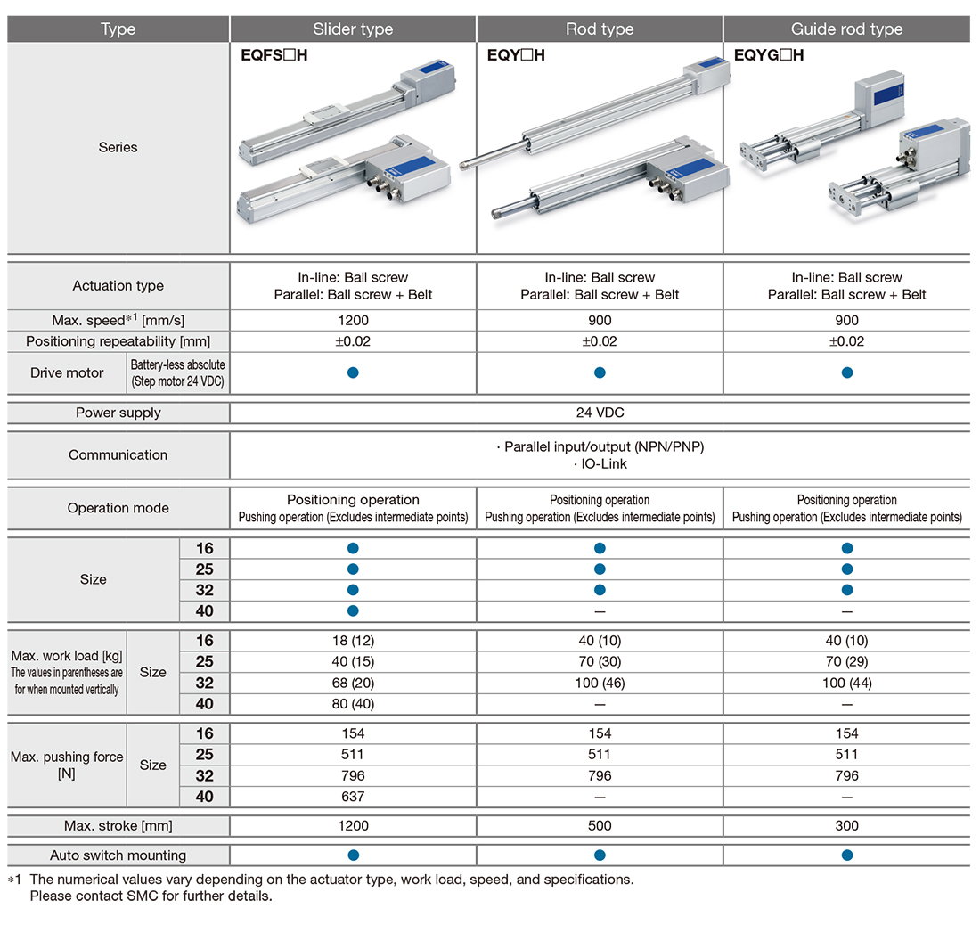 Model View search result EQY16□H View search result EQFS25□H View search result EQFS32□H View search result e-Actuator Easy to Operate Integrated Controller Slider Type/Rod Type/Guide Rod Type EQFS□H